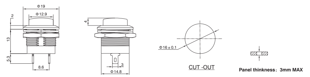 Contact Rating: 3A@120VAC or 28 VDC; 0.4VA max@ 20VAC OR DC max.