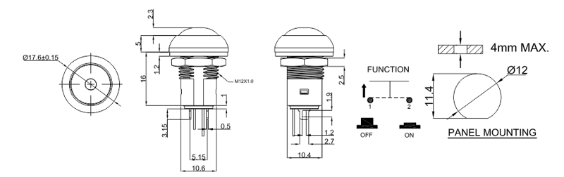 • 防水按鍵開關(guān)PB12A-2-RR-R