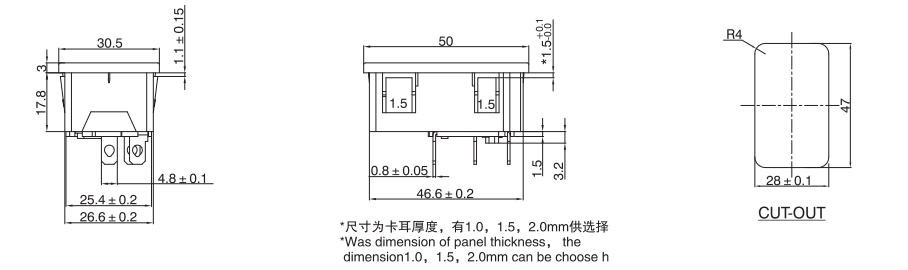 治具插座S-03系列,單插、二合一、三合一保險(xiǎn)插座等多種規(guī)格,大電流10A ,15A,產(chǎn)品通過UL VDE CCC CB等認(rèn)證,常見于家用電器,音響功放機(jī)等