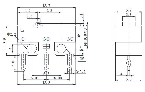 電氣參數(shù):1A 250VAC 3A 250VAC